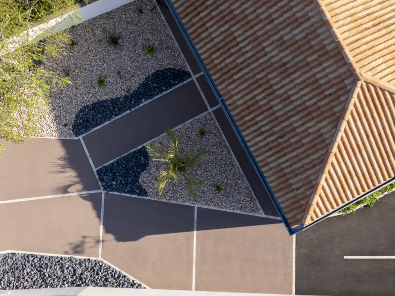 Ces environnements ruraux, caractérisés par des terrains plus souples, un trafic ponctuel mais parfois lourd (véhicules utilitaires, machines agricoles) et une forte présence d’espaces verts, exigent des revêtements solides, économiques, fonctionnels et durables, capables de rester stables au fil des saisons.